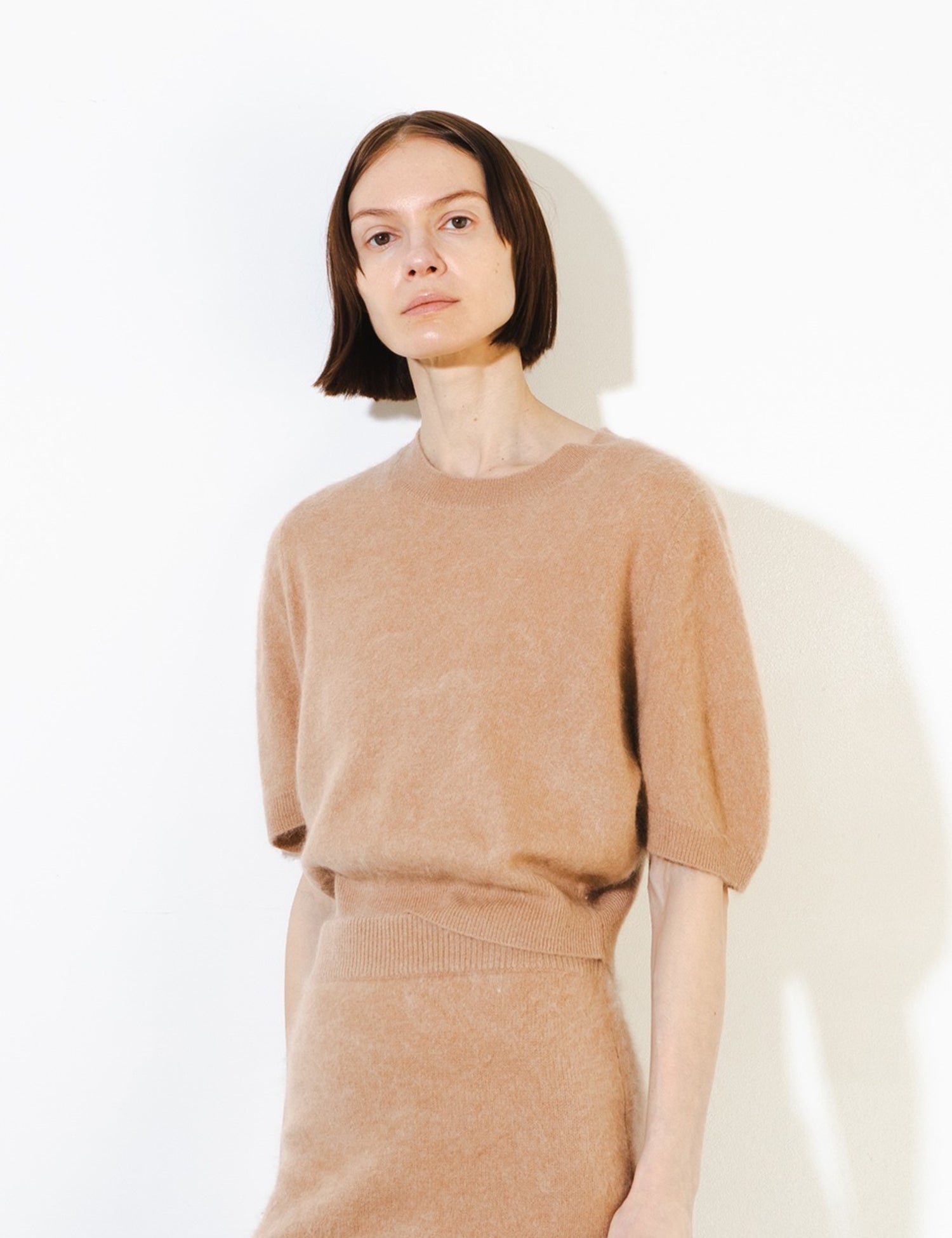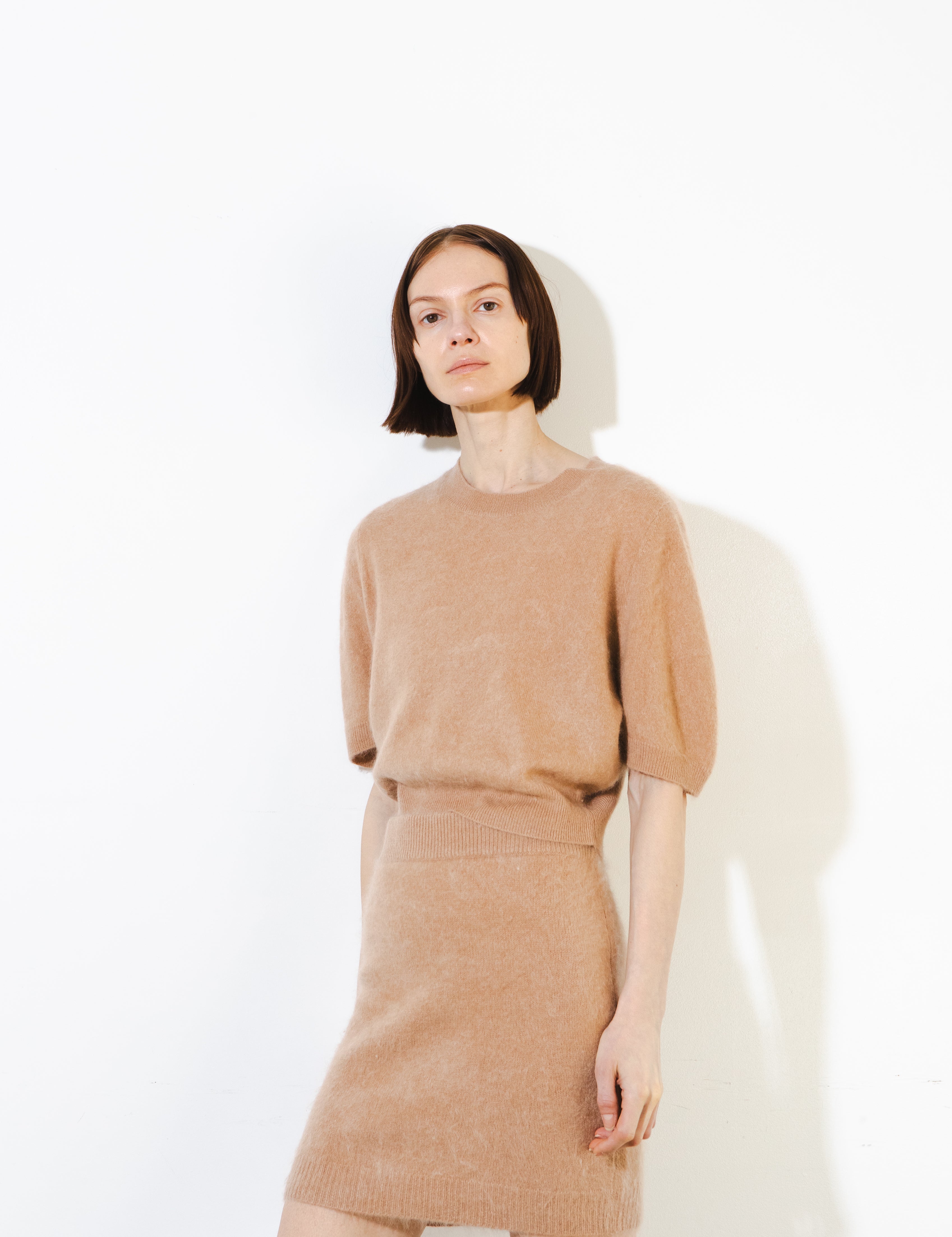 Brushed Cashmere Mini Skirt_Camel