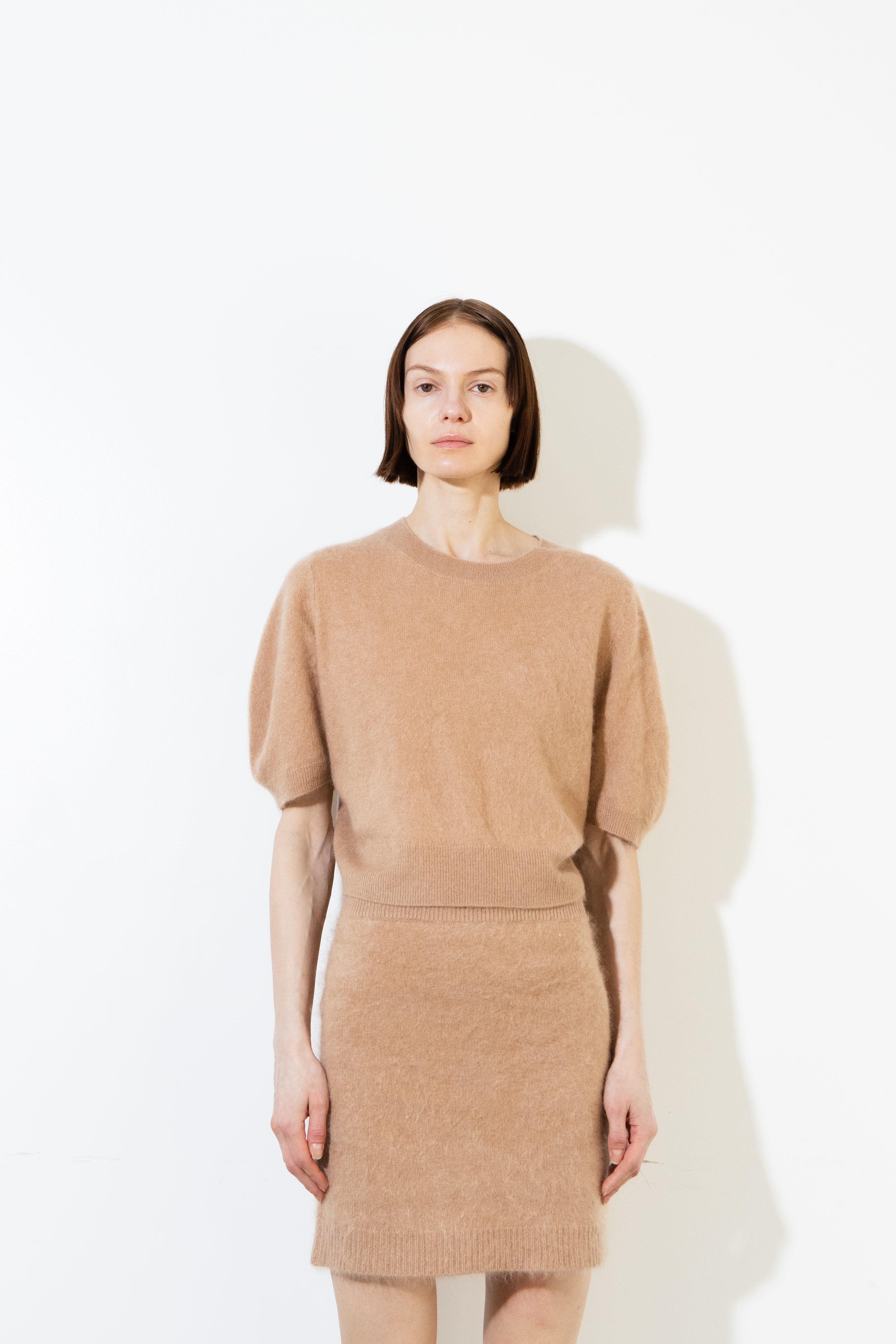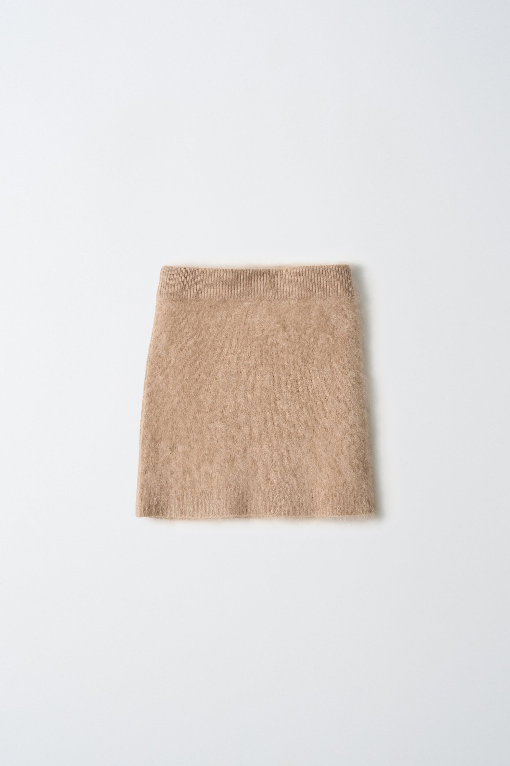 The Cashmere Mini Skirt is made from 100% Mongolian Cashmere features a decent length along with elastic band, providing warmth and comfort. Its slim straight fit sillouette, combined with the stripes at the front and back, creates feminie mood. Pairing the Cashmere Mini Skirt with the Button Long Cardigan completes a stylish and coordinated outfit.