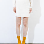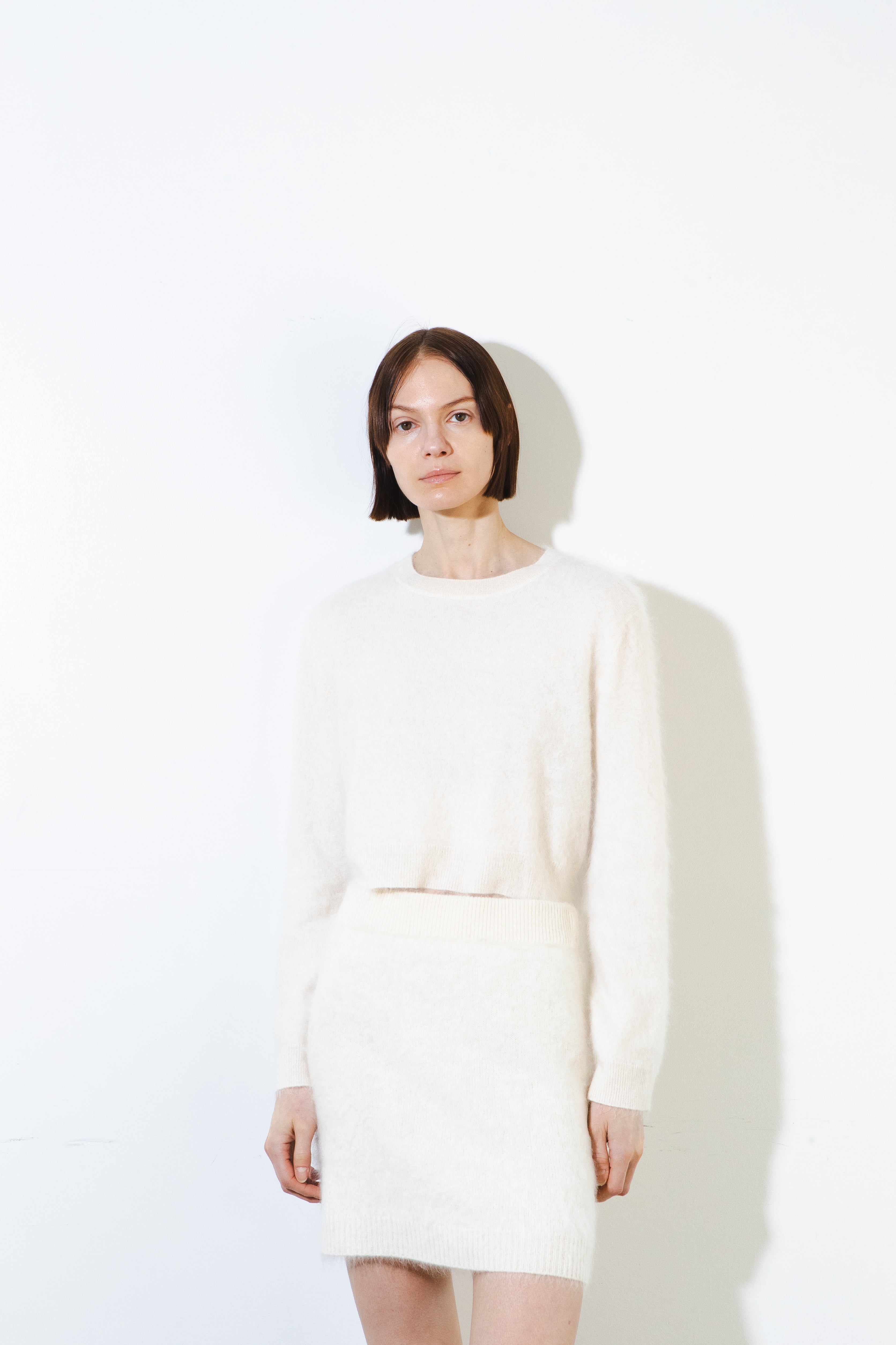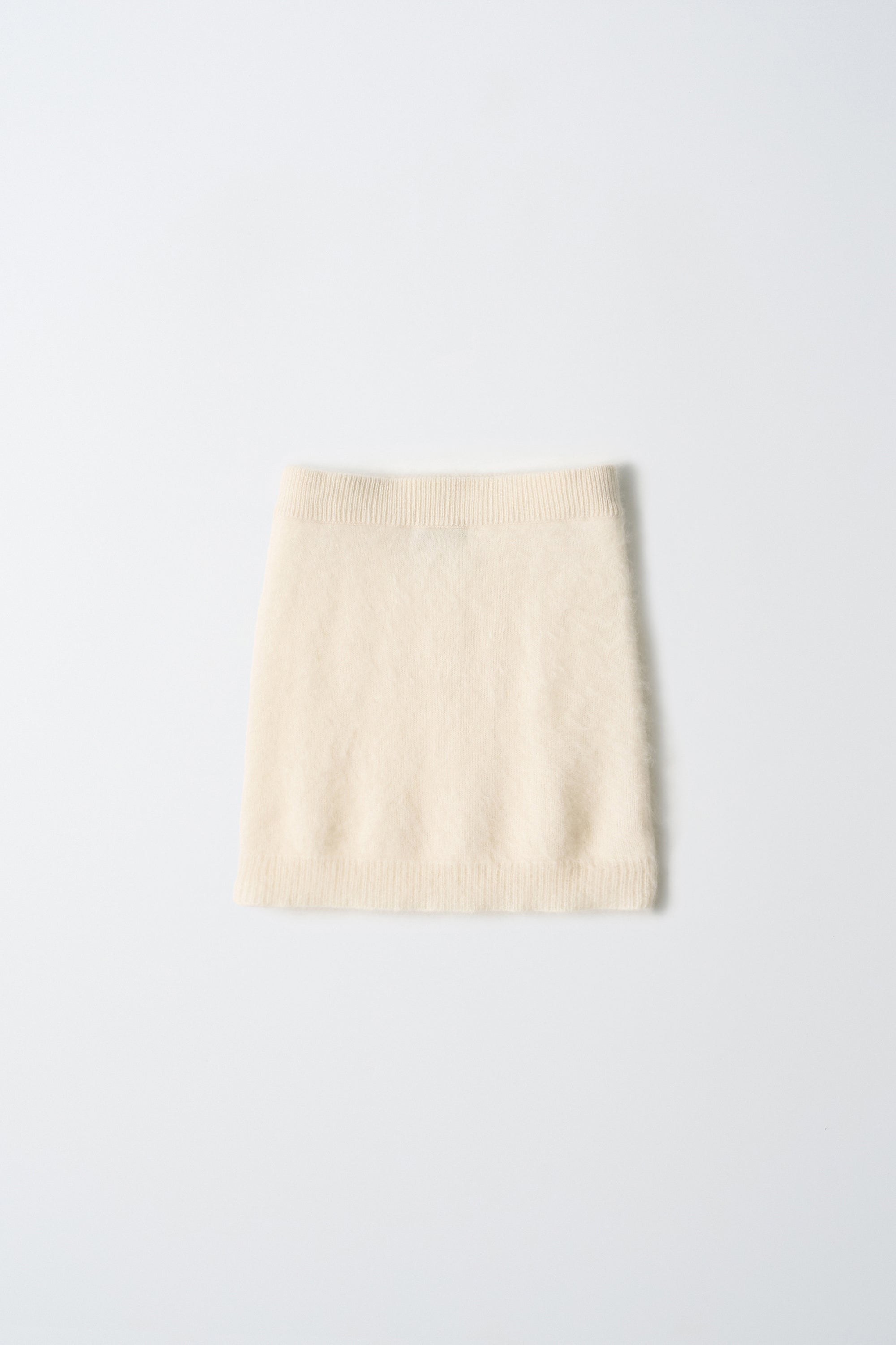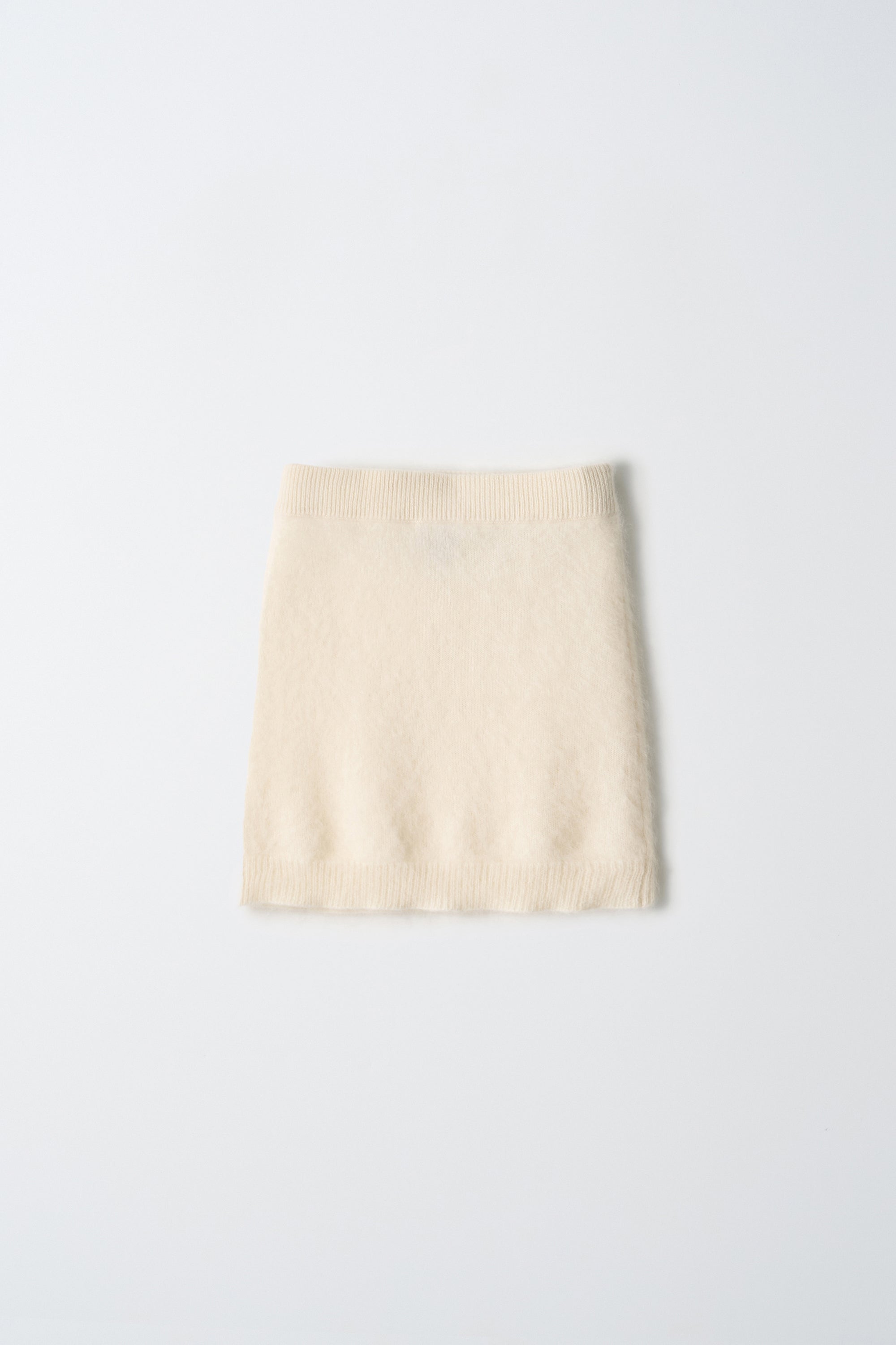 The Cashmere Mini Skirt is made from 100% Mongolian Cashmere features a decent length along with elastic band, providing warmth and comfort. Its slim straight fit sillouette, combined with the stripes at the front and back, creates feminie mood. Pairing the Cashmere Mini Skirt with the Button Long Cardigan completes a stylish and coordinated outfit.