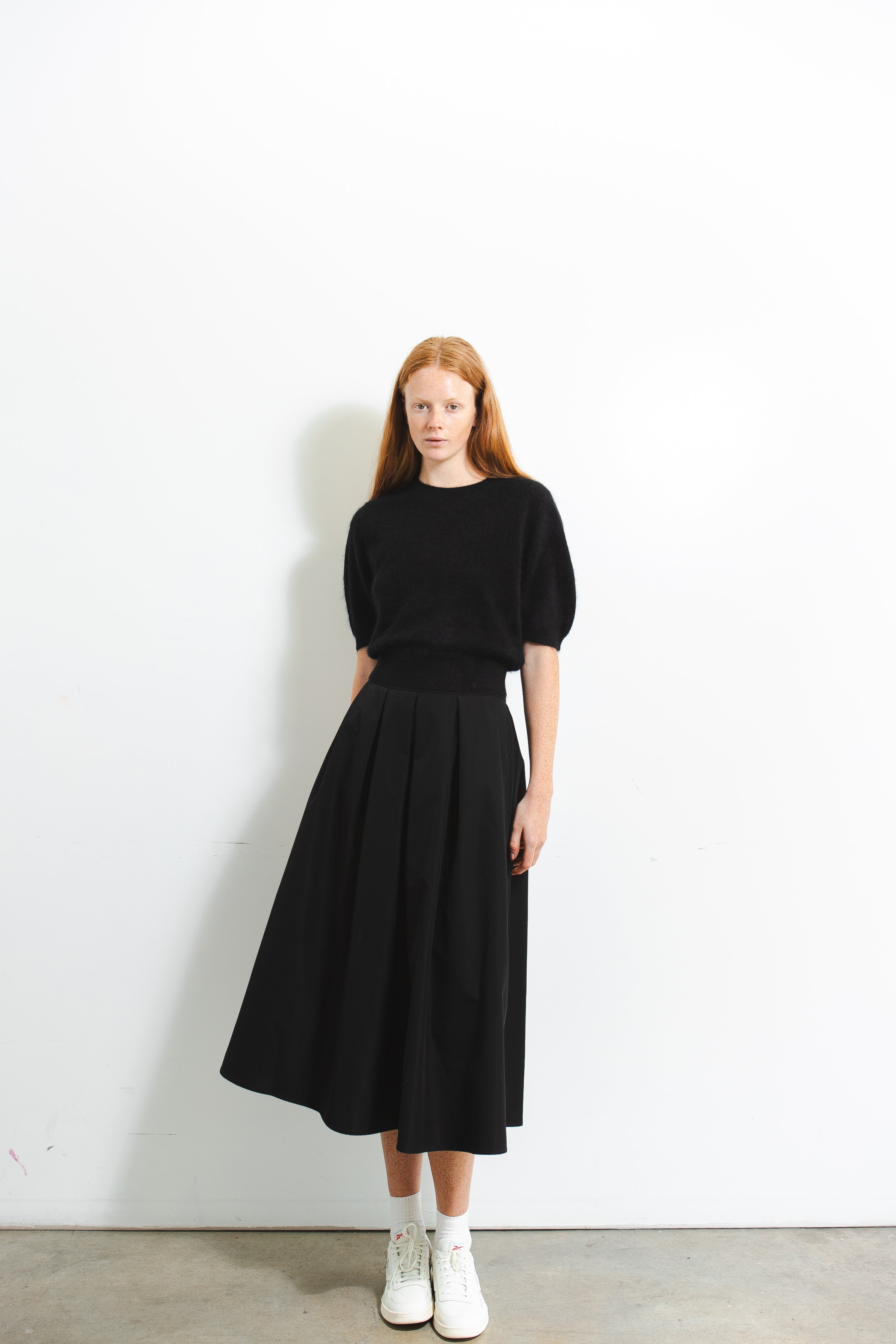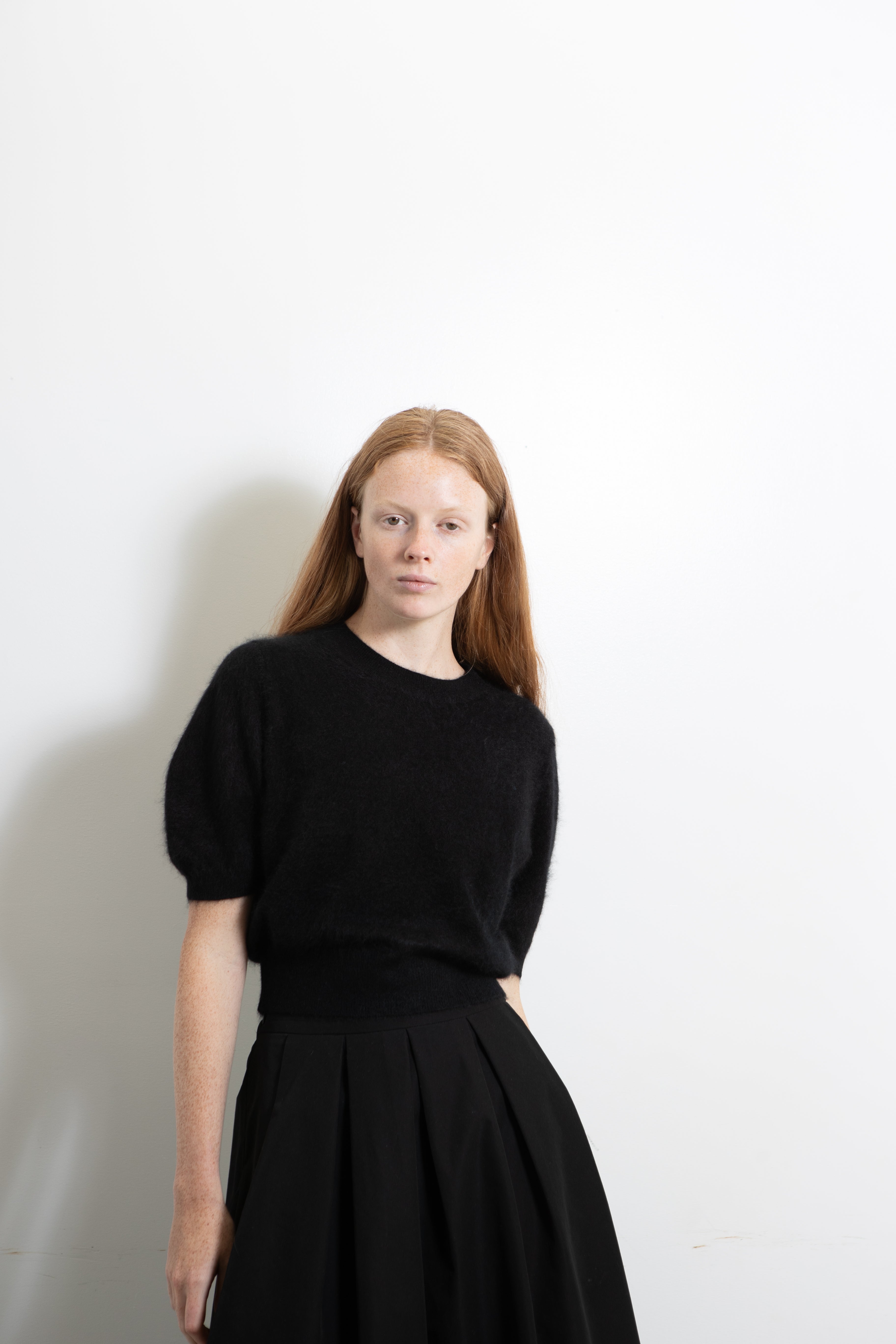 Made from 100% Mongolian Cashmere, the Puff Shortsleeve Top is highlighted by lightness and softness. This top effortlessly exudes a magnificent ambiance with a round neck line and puff sleeve lines which connect the shoulder to the wrist naturally. It is a comfortable versatile sweater that effortlessly creates a stylish and elegant look.