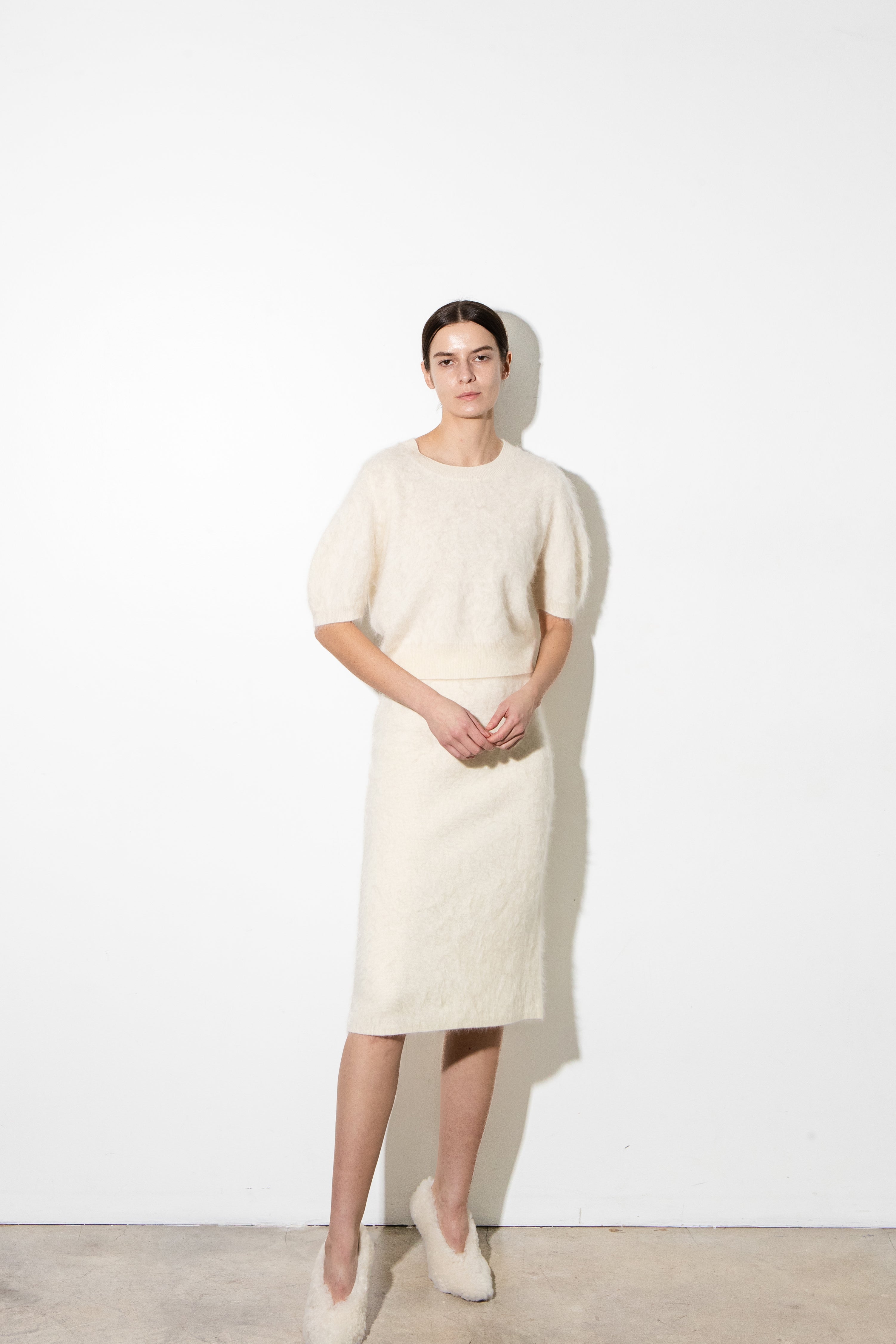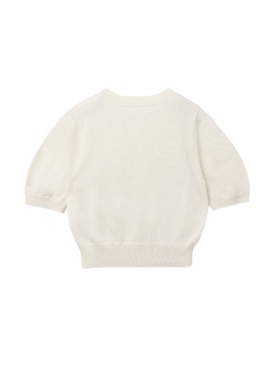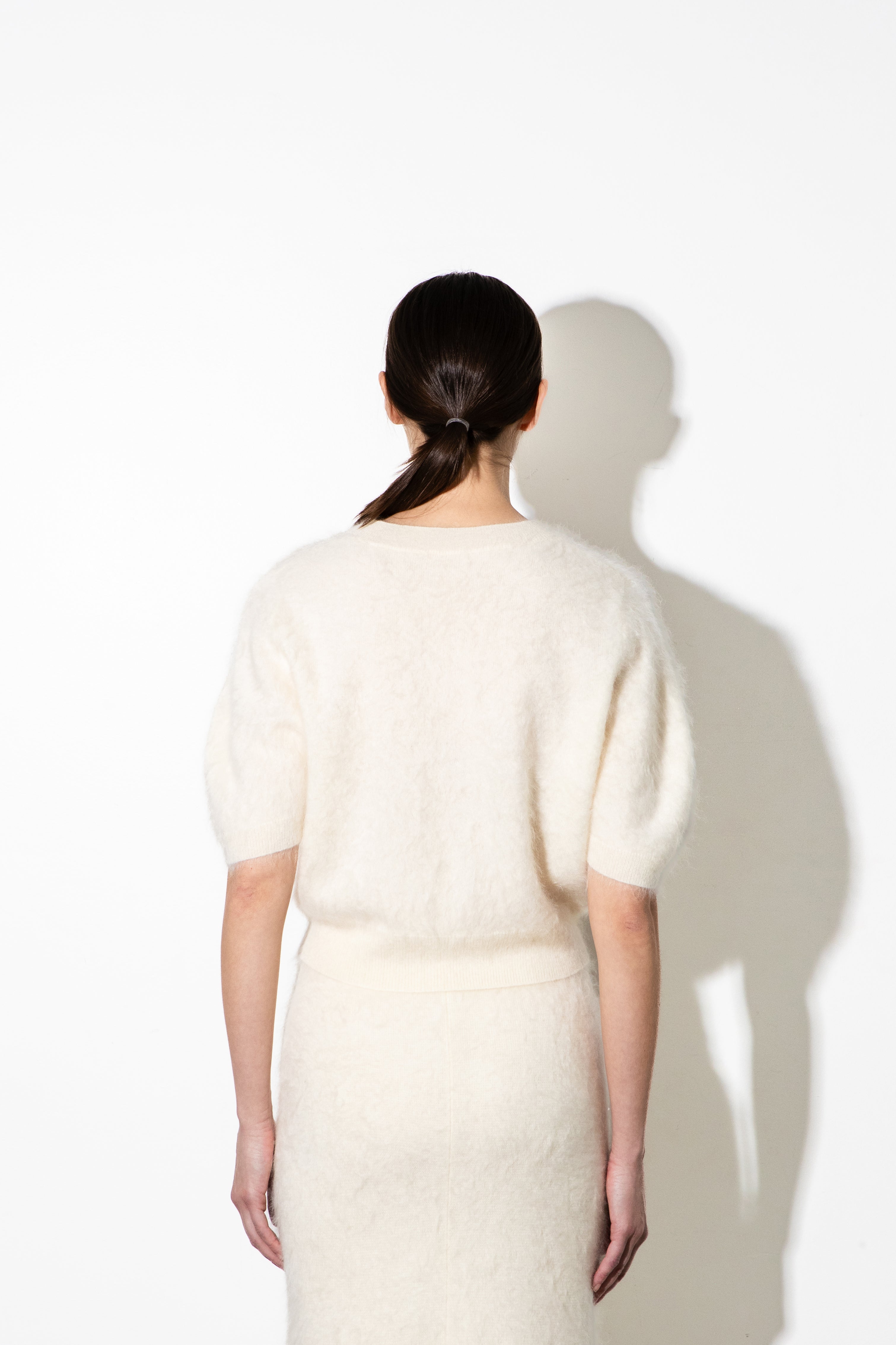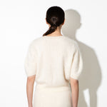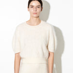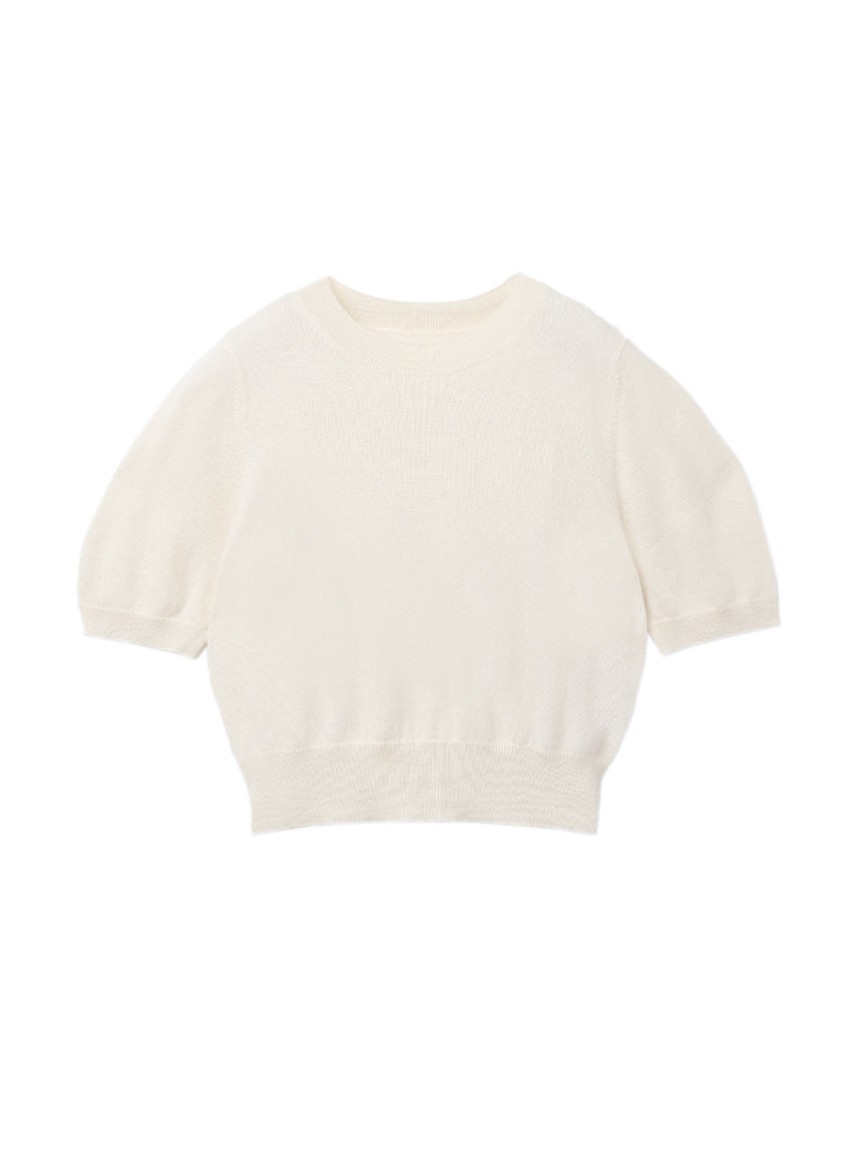 Made from 100% Mongolian Cashmere, the Puff Shortsleeve Top is highlighted by lightness and softness. This top effortlessly exudes a magnificent ambiance with a round neck line and puff sleeve lines which connect the shoulder to the wrist naturally. It is a comfortable versatile sweater that effortlessly creates a stylish and elegant look.
