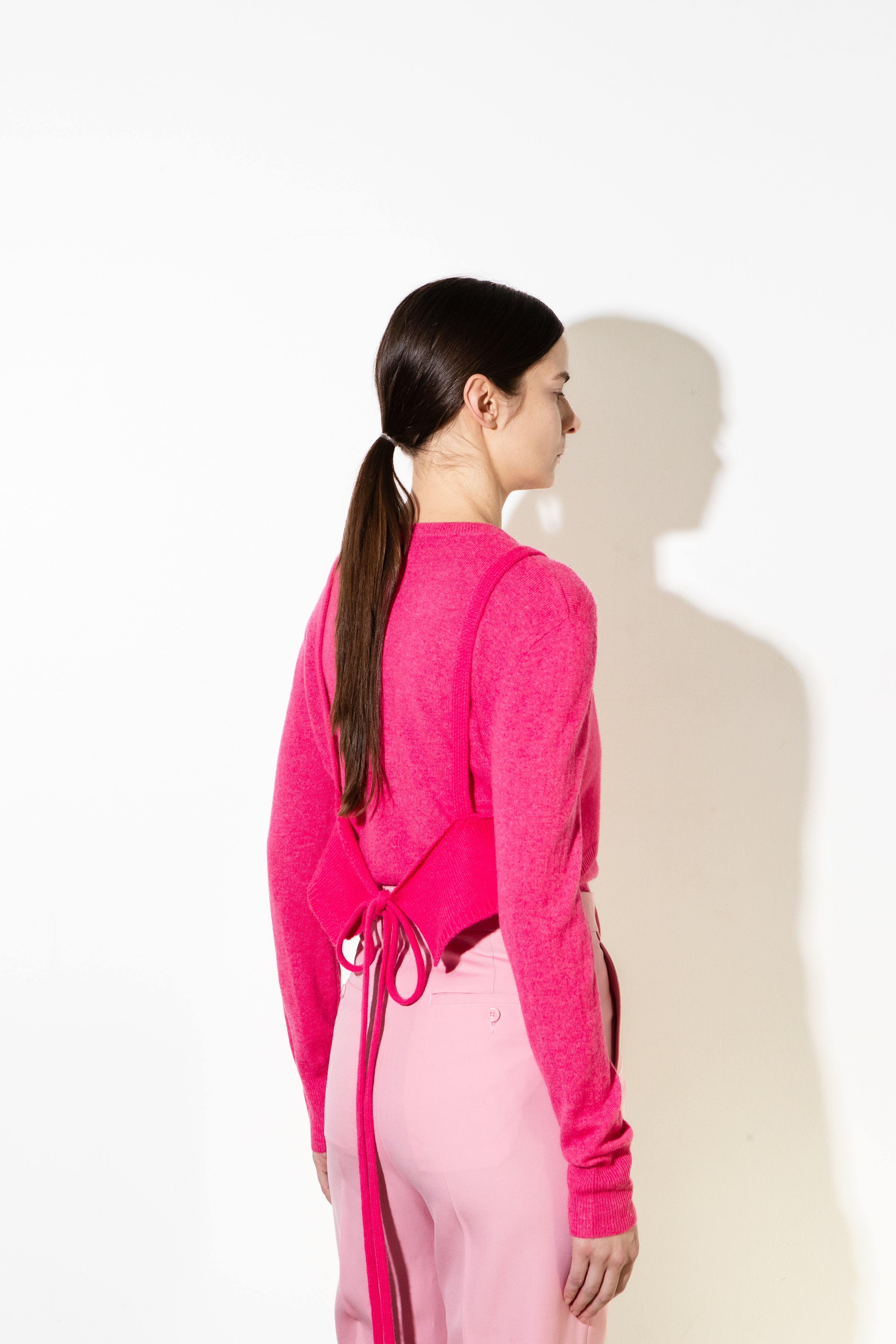 A modern layering piece crafted from pure cashmere. This unique bustier design adds a refined yet contemporary touch when styled over shirts, turtlenecks, or dresses. Soft, lightweight, and versatile — it redefines knitwear with an unexpected silhouette that elevates any look.