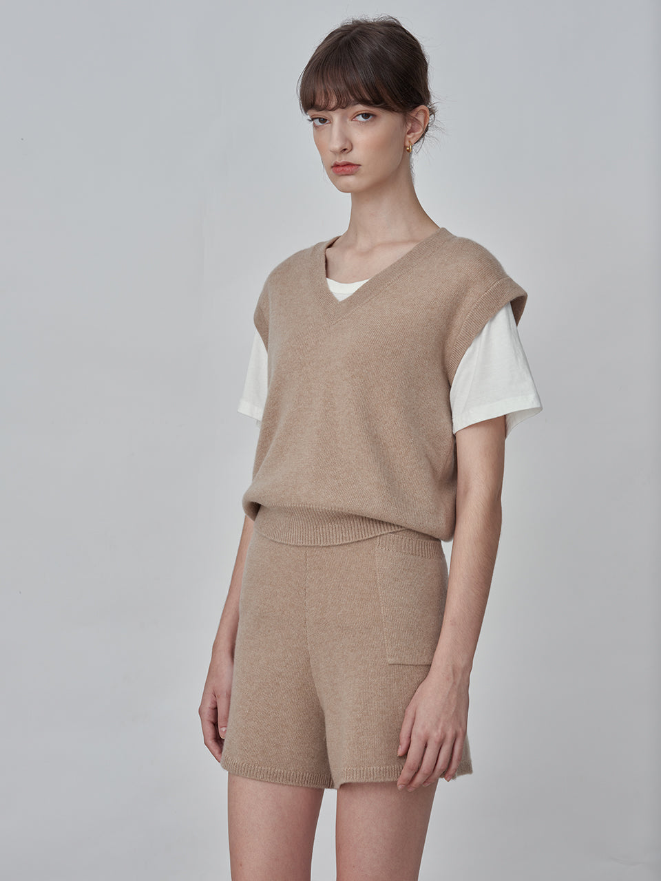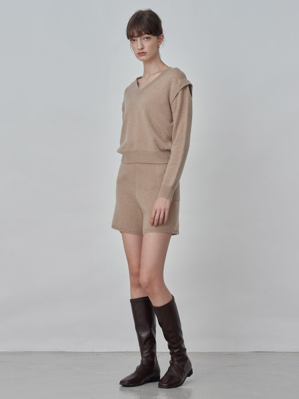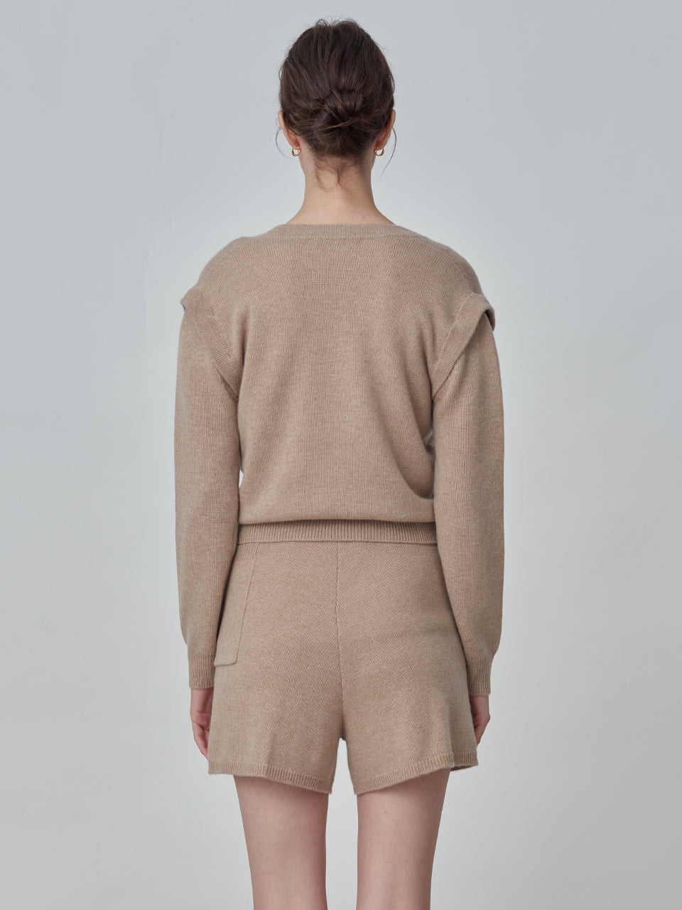 Made from 100% Mongolian Cashmere, the Detachable Sleeve Top is a versatile garment that exudes a unique charm. It offers the possibility to create a variety of styles thanks to its detachable sleeves, which are connected by buttons. This top is comfortable and easy to wear and it effortlessly creates a magnificent look when worn alone. Pairing the Detachable Sleeve Top with the Cashmere Shorts from PURE CASHMERE NYC completes a stylish and coordinated ensemble.