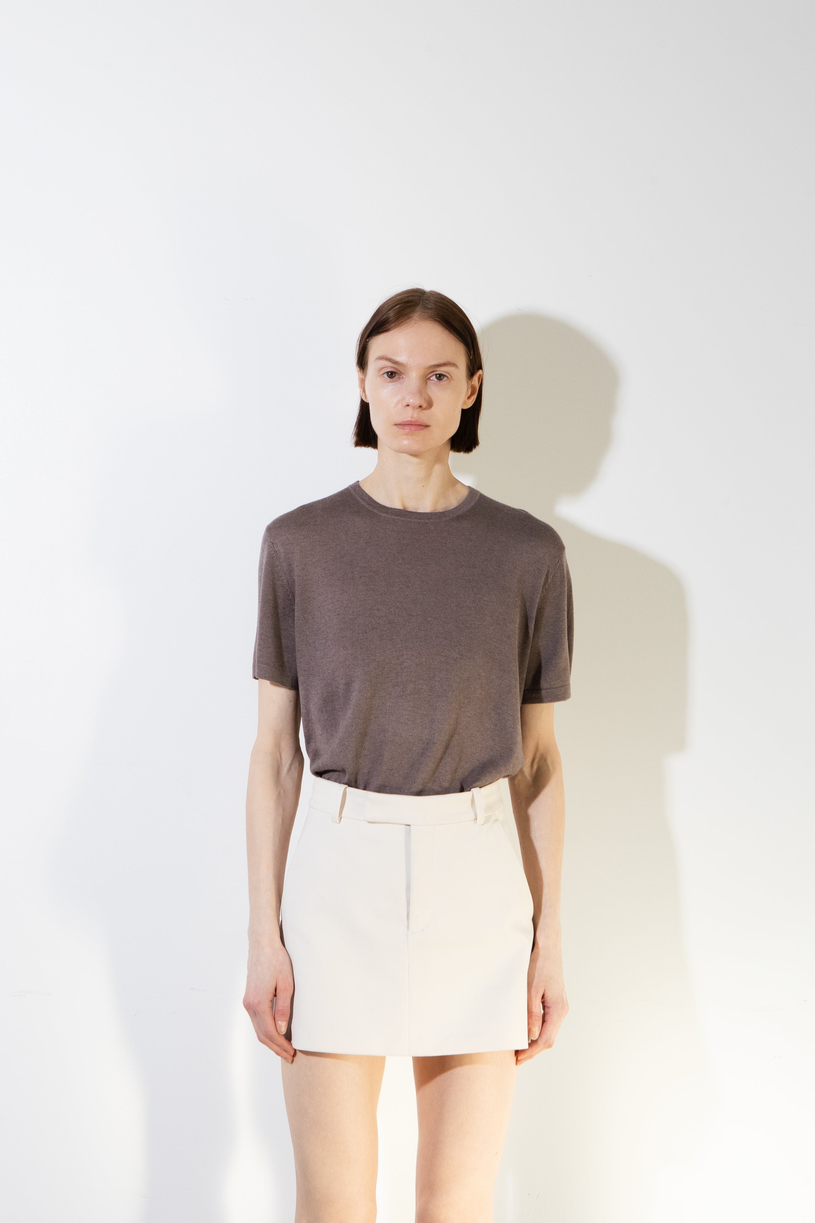 Knitted from a refined blend of 85% silk and 15% cashmere, this lightweight T-shirt offers exceptional softness with a subtle sheen. The breathable, fluid texture drapes beautifully on the body, delivering effortless elegance in a simple silhouette. Perfect on its own or layered under tailoring for a polished, modern look.