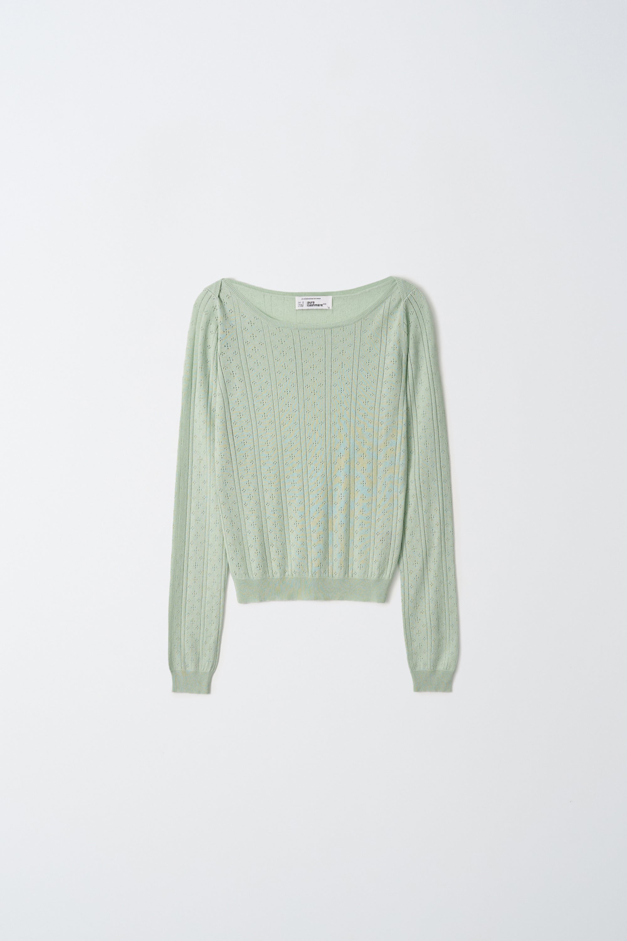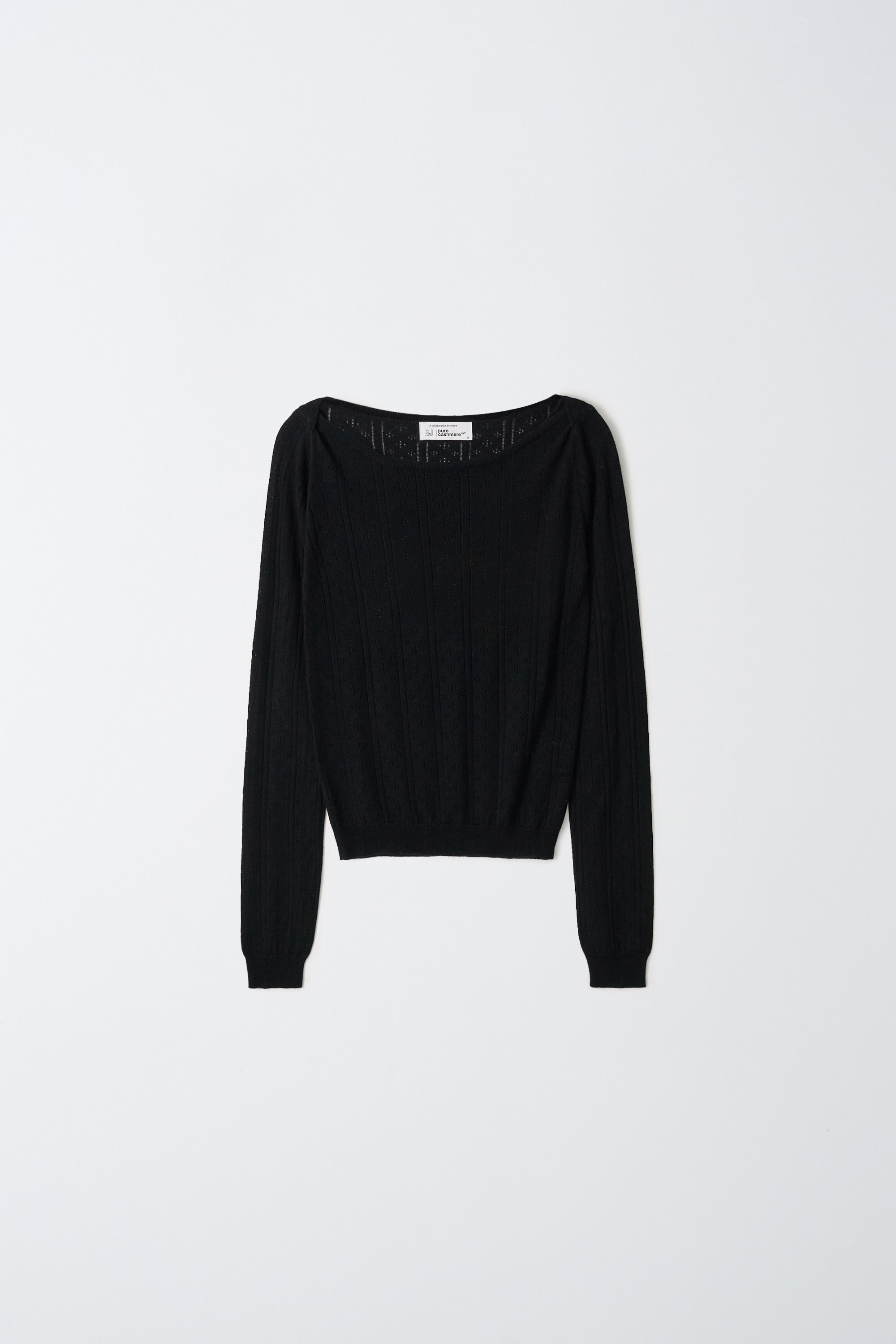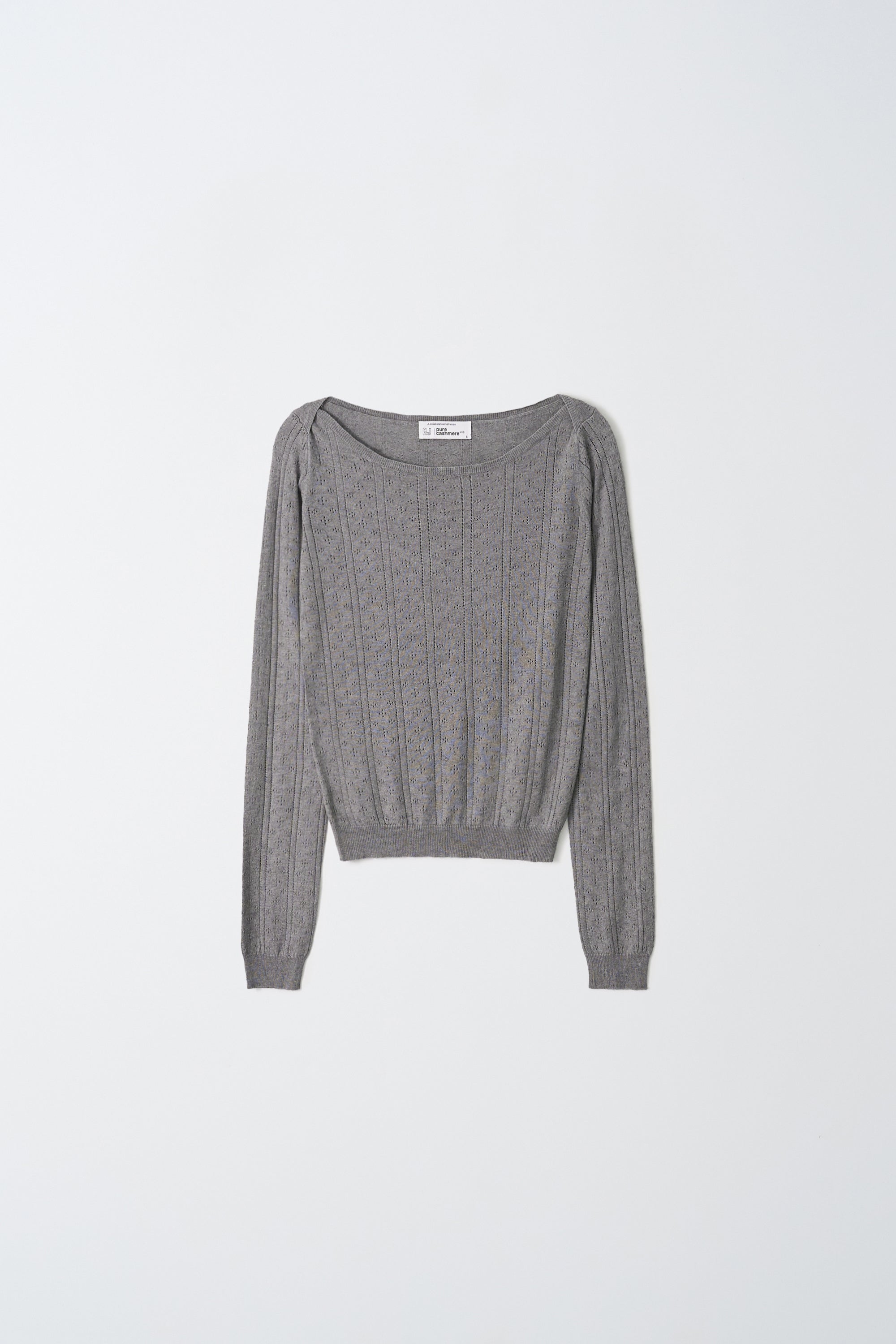 A refined essential designed for effortless elegance, this boatneck T-shirt is crafted from a soft cashmere and silk blend that feels smooth and lightweight against the skin. Delicate pointelle detailing adds texture and a feminine touch, while the clean boatneck neckline creates a modern, relaxed mood. Perfect for layering or wearing on its own — understated, airy, and endlessly versatile.