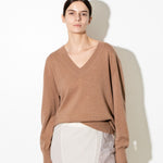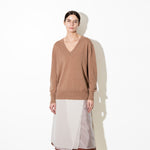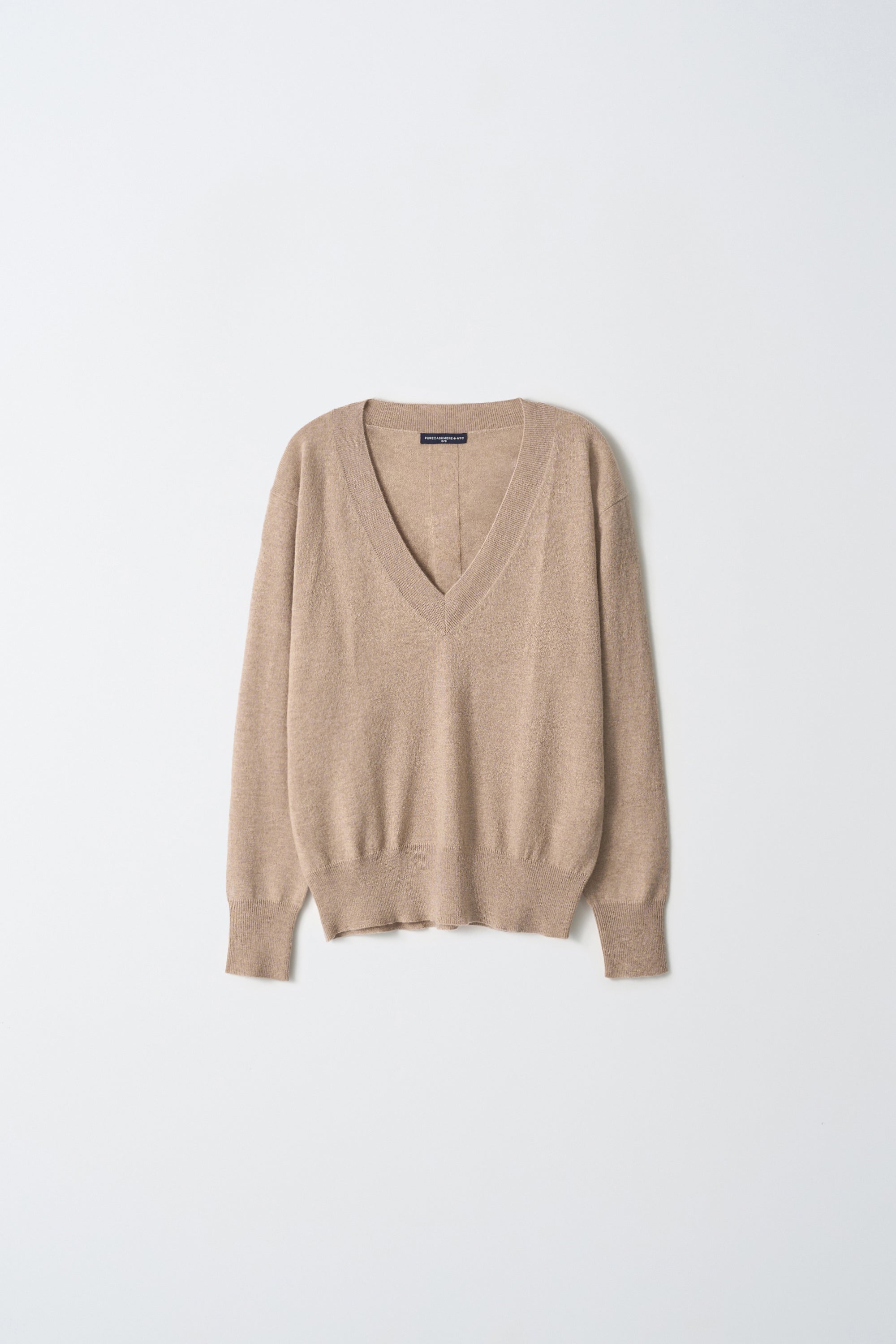Effortlessly relaxed yet refined, this oversized V-neck sweater is crafted from the finest pure cashmere for an exceptionally soft and luxurious feel. The loose silhouette drapes beautifully on the body, offering both comfort and modern elegance. Designed with a deep neckline and clean finishing, it’s perfect for layering over shirts or wearing on its own for a timeless, understated look.