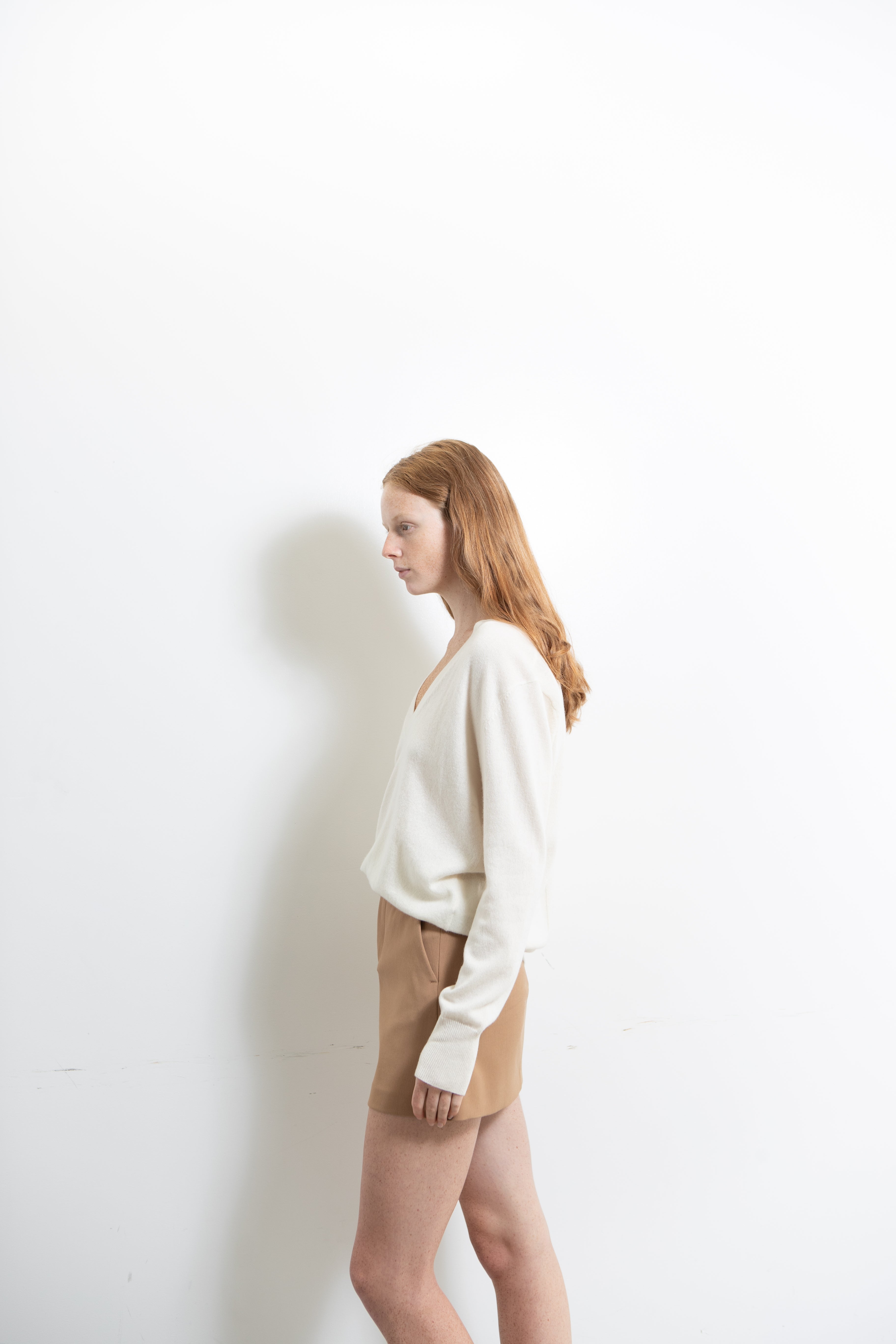 Effortlessly relaxed yet refined, this oversized V-neck sweater is crafted from the finest pure cashmere for an exceptionally soft and luxurious feel. The loose silhouette drapes beautifully on the body, offering both comfort and modern elegance. Designed with a deep neckline and clean finishing, it’s perfect for layering over shirts or wearing on its own for a timeless, understated look.