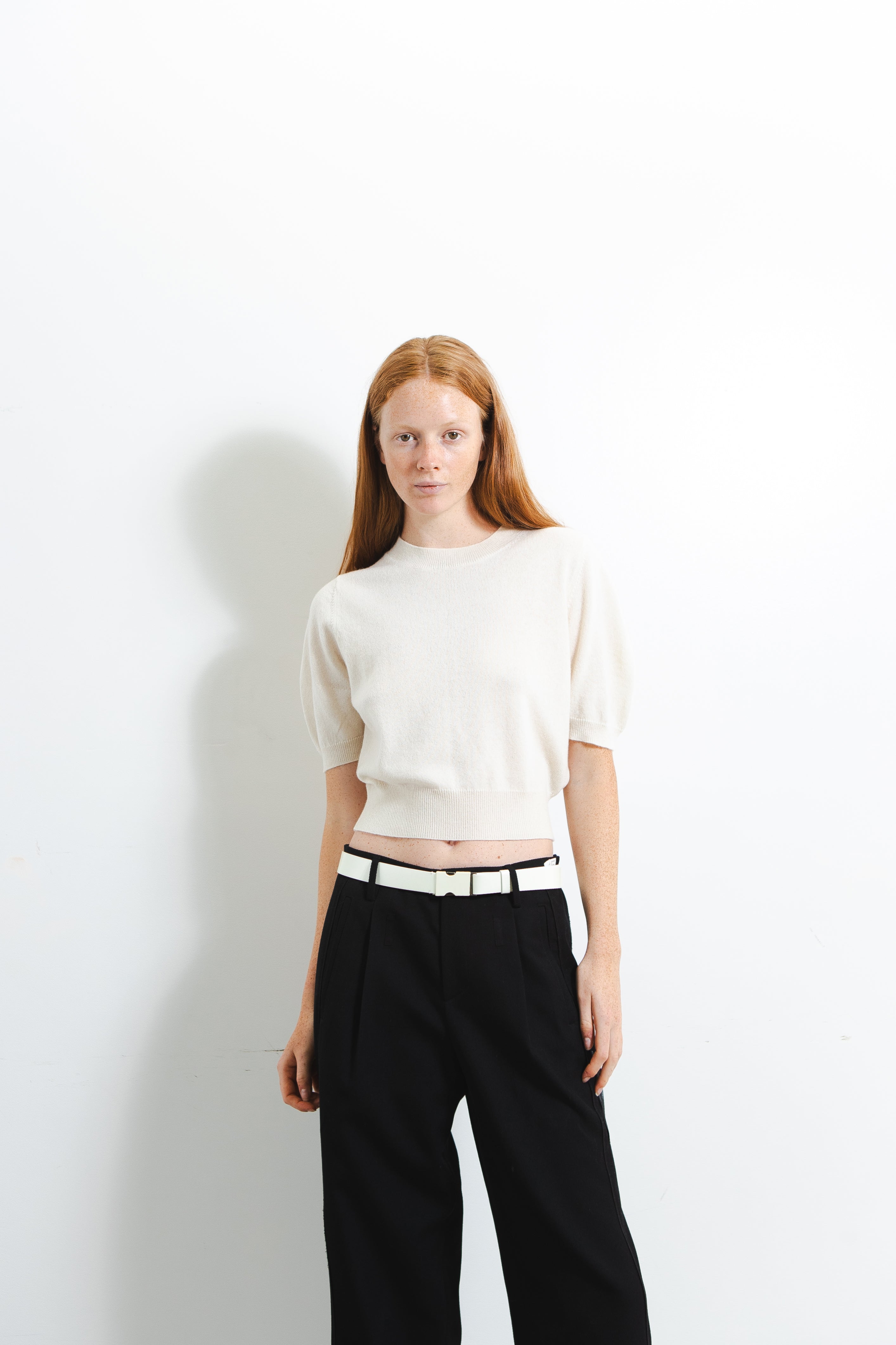 Made from 100% Mongolian Cashmere, the Puff Shortsleeve Top is highlighted by lightness and softness. This top effortlessly exudes a magnificent ambiance with a round neck line and puff sleeve lines which connect the shoulder to the wrist naturally. It is a comfortable versatile sweater that effortlessly creates a stylish and elegant look.