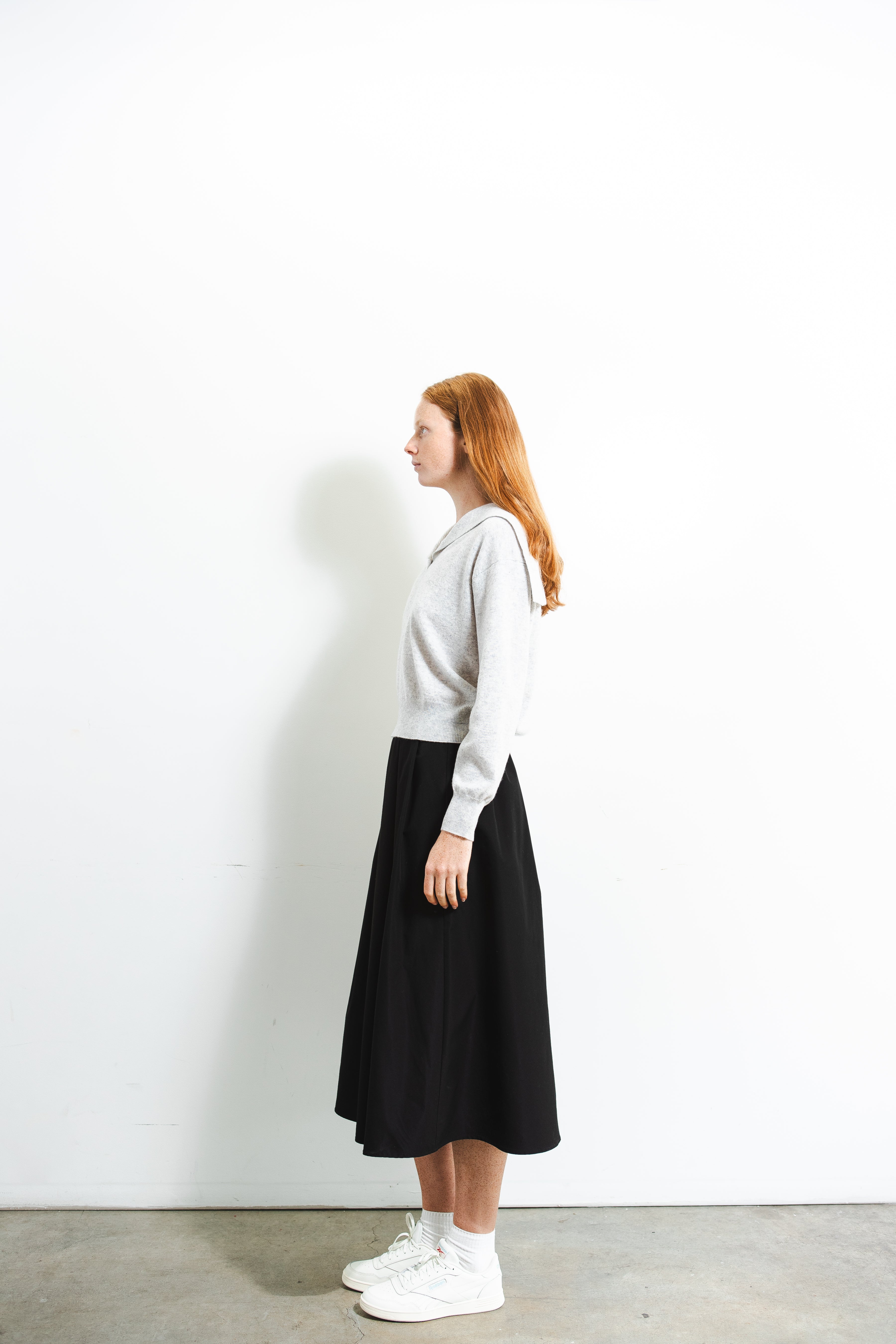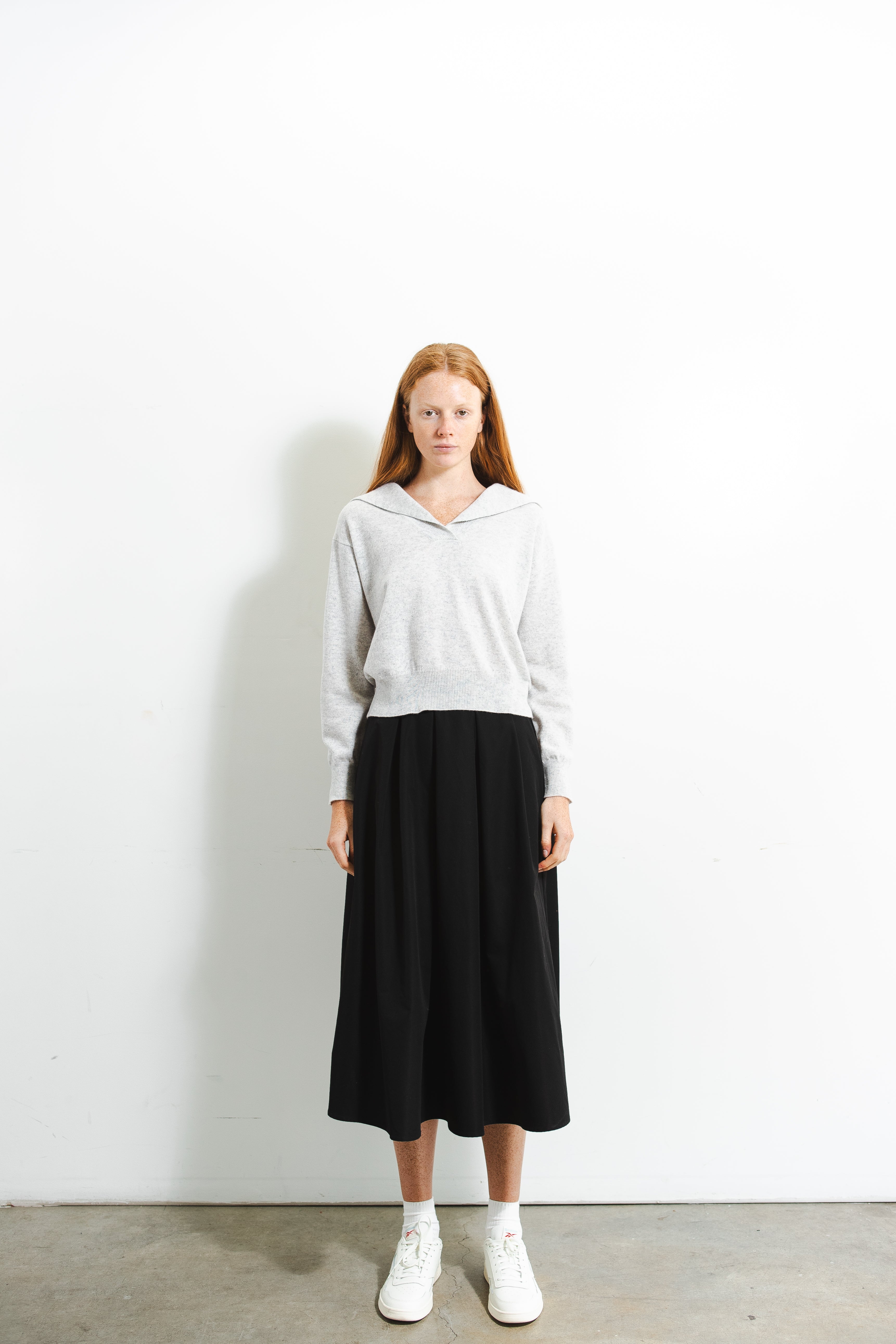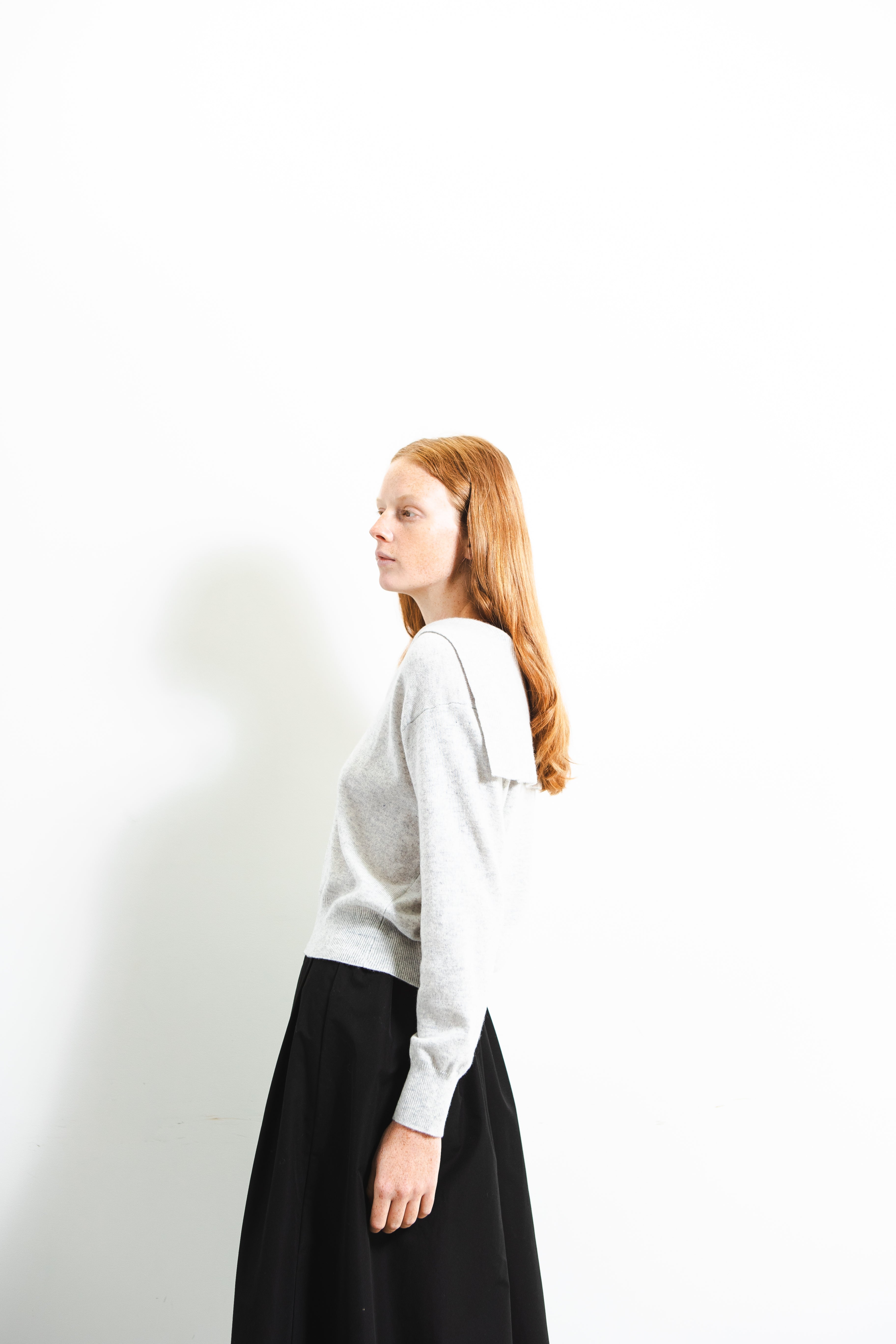 A refined take on a classic silhouette. Crafted from pure cashmere, this sailor-collar top combines timeless charm with a modern sensibility. The soft, lightweight knit drapes beautifully over the body, while the distinctive collar detail adds a subtle statement of sophistication. Perfect for effortless layering across seasons.